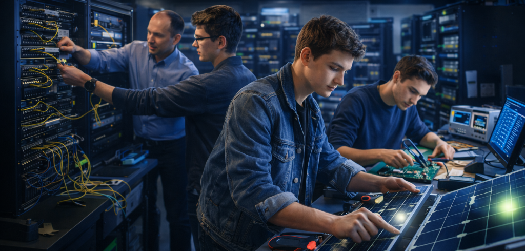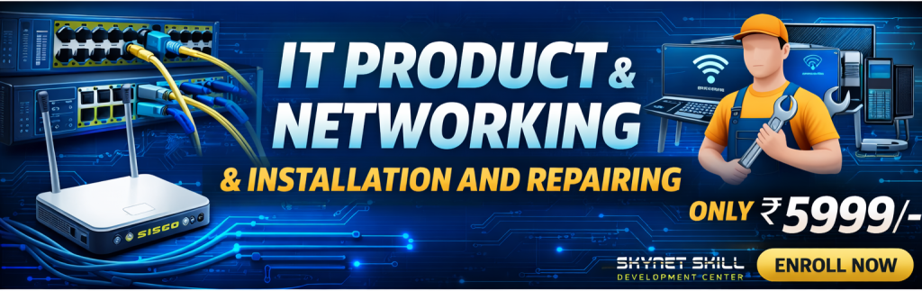 Welcome to Skynet Skill Development Center, a professional technology and skill development institute focused on practical learning and real-world applications. We provide industry-oriented training in IT Products & Networking Installation and Repairing, Electronics & Electricals, and Green Energy & Lithium Battery Systems. Our goal is to build job-ready skills through hands-on training and expert guidance. At Skynet, we help students and professionals grow with future-focused technology knowledge. Learn, upgrade your skills, and build a strong technical career with us.